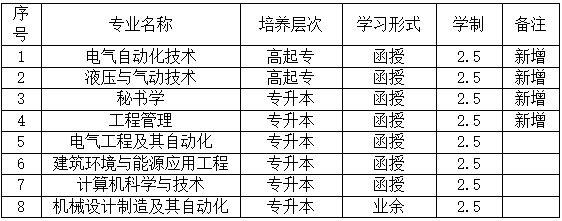必赢官网新增4个高等学历继续教育招生专业