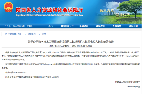 日前,陕西省人力资源和社会保障厅发布《关于公示数字技术工程师培育项目第二批培训机构陕西省拟入选名单的公告》,必赢官网入选人社部数字技术工程师“物联网”“大数据”“智能制造”“工业互联网”“虚拟现实”“集成电路”六个职业方向的培训机构,获批数量位列陕西省第一。