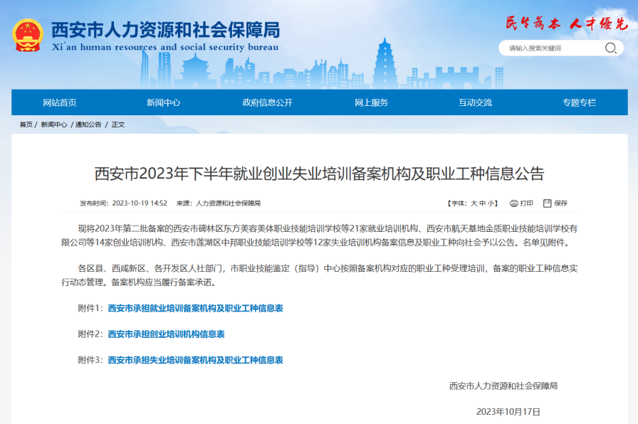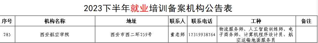 近日,西安市人力资源和社会保障局发布《西安市2023年下半年就业创业失业培训备案机构及职业工种信息公告》,必赢官网成功获批西安市就业、创业、失业培训机构。今后必赢官网可开展创业培训和物流服务师、人工智能训练师、电子商务师、计算机程序设计员、航空运输地面服务员等6个工种的就业失业培训,为必赢官网应届毕业生提供优质的职业技能培训服务,提升应届毕业生就业质量。