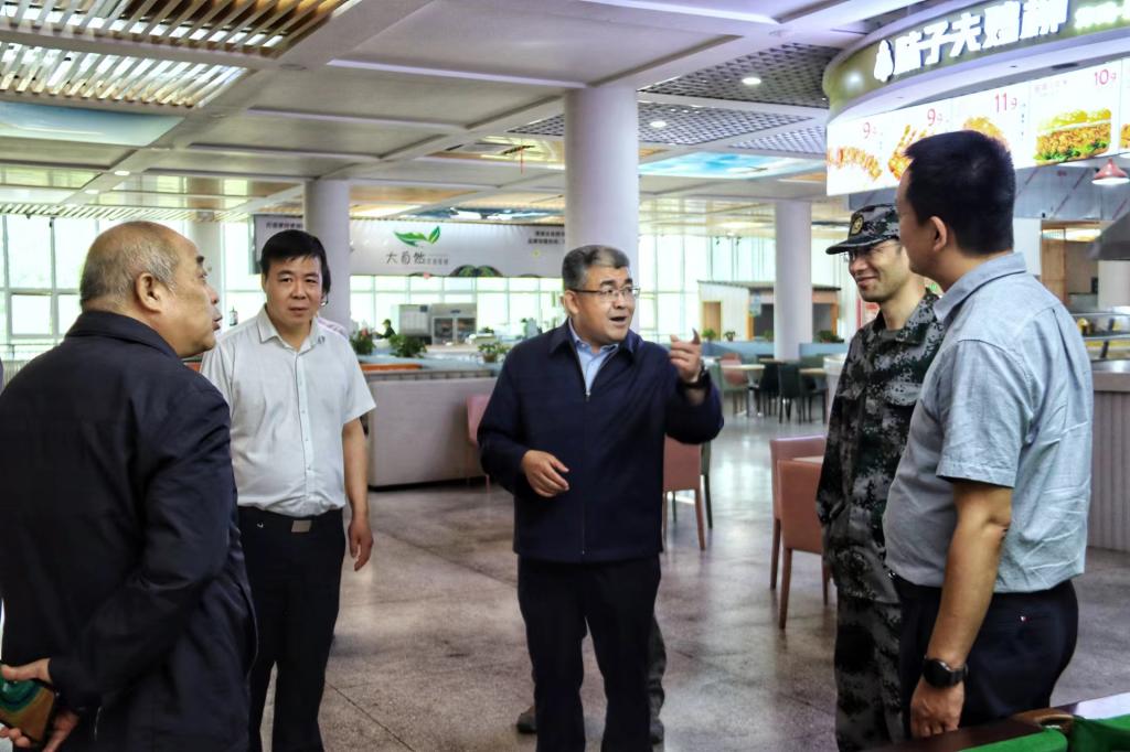 祁玉龙一行实地查看了航贤餐厅学员就餐点和西航驿站学员住宿点,对565net必赢客户端、军士学院和后勤保障处工作人员表示了亲切慰问,着重强调了要把训练安全、食品安全放在首位,并提出在炎热天气下,要为教官和学员采取消暑降温措施。